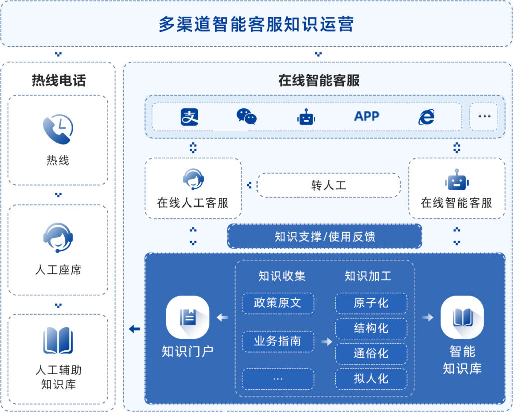 德生科技智能知识运营服务结合大语言模型、图谱技术与行业知识库融合,整合规范各业务部门的碎片化知识线上咨询经办统一嵌入服务出入口,塑造高效的智能机器人,嵌入银行、人社和就业中心等政府机构的各类线上和线下服务渠道,为百姓提供咨询经办一体化的智能服务。